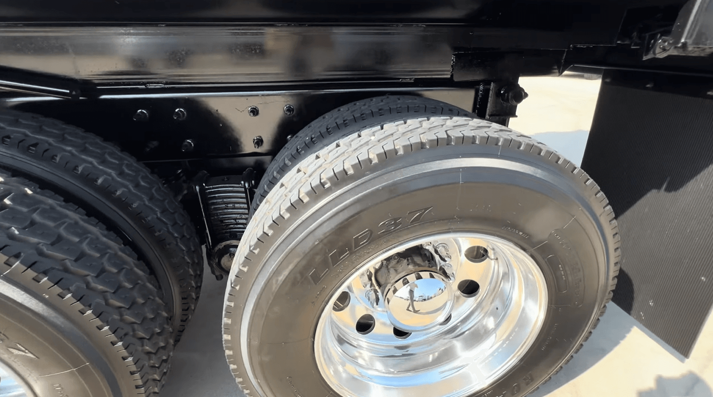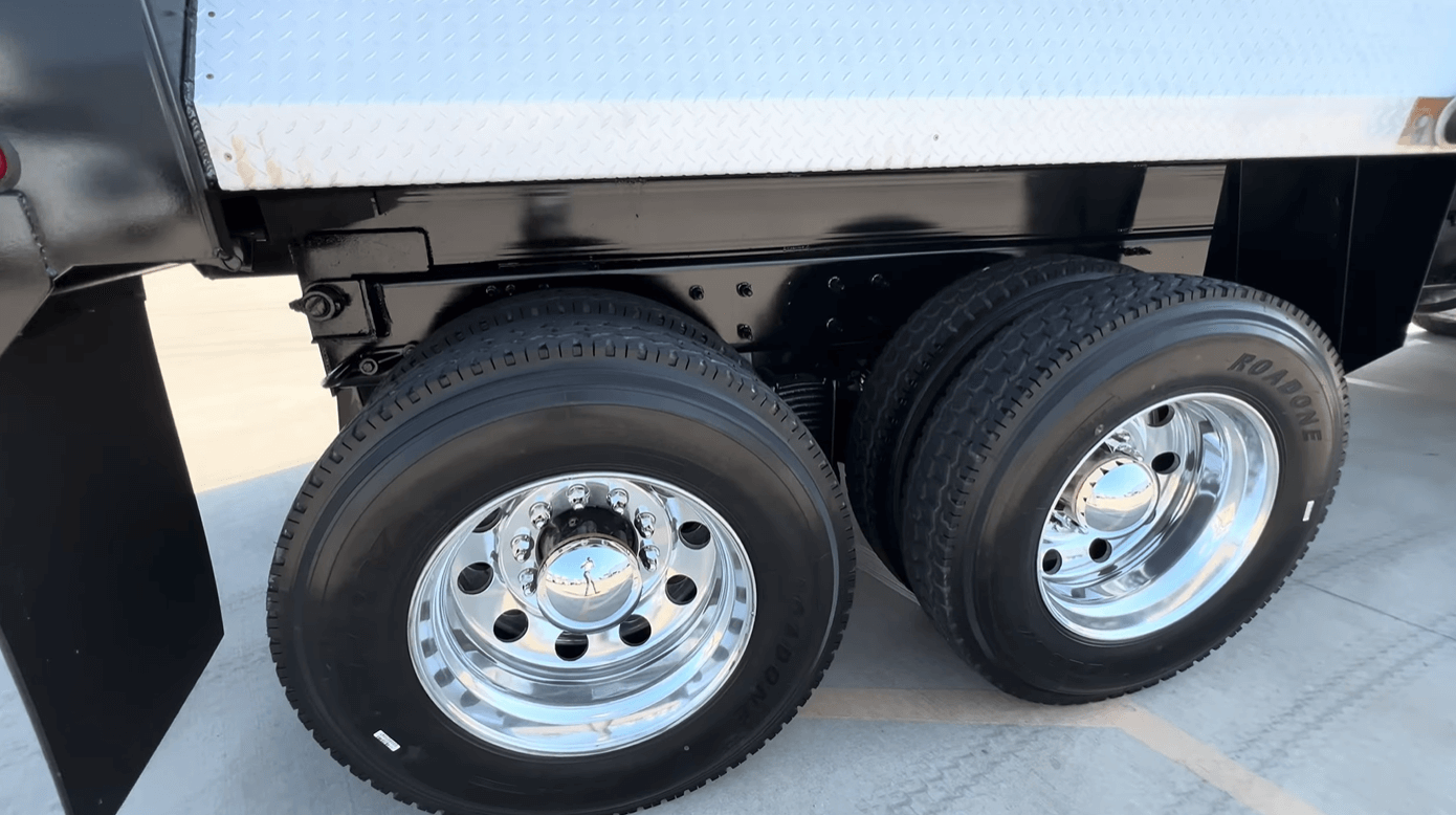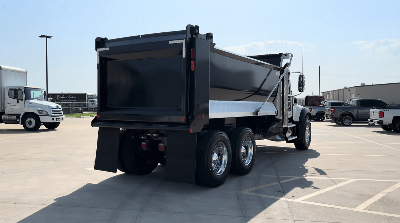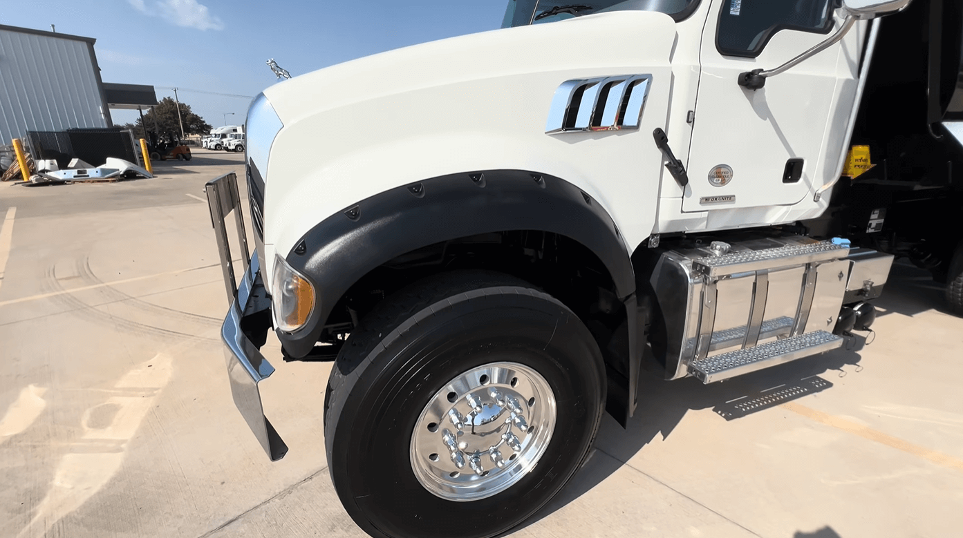 Low mileage on this pair of MP8/Allison powered 2022 Mack GR64F tandem axle dump truck with only 65k miles and 16ft/20yd OX Bodies 1/2 round dump body.